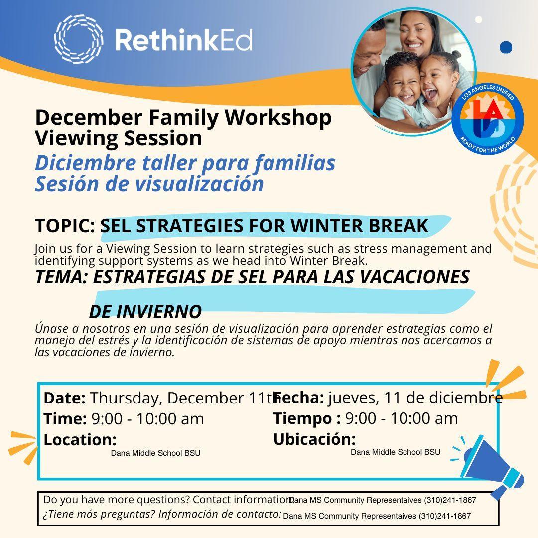 Family Workshop Re Think Ed Thus Dec 11 (in Person) 9-10 am DanaMs